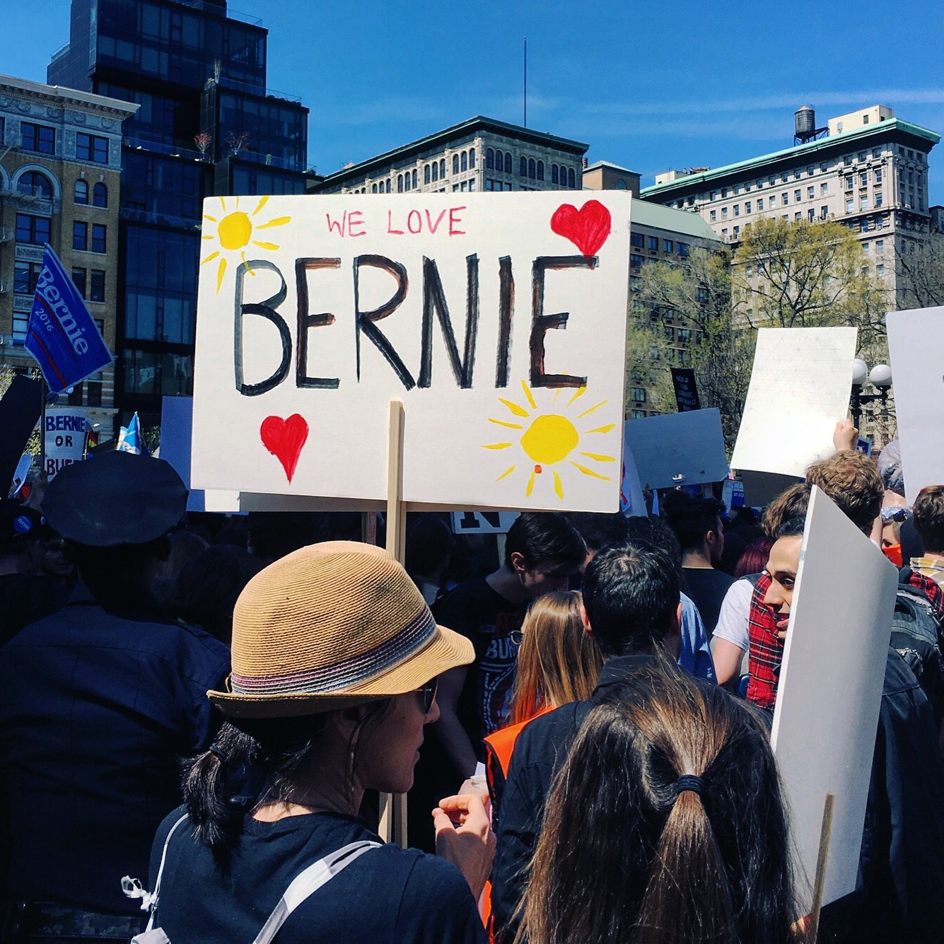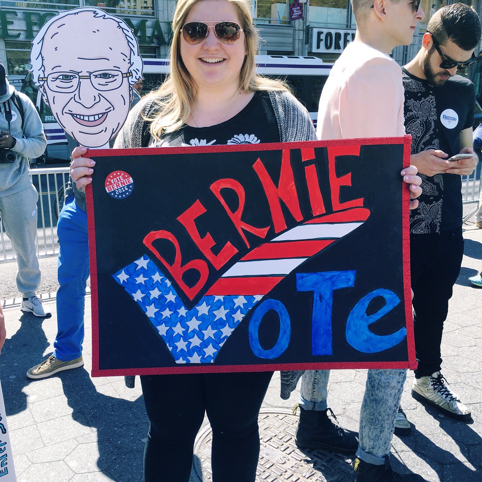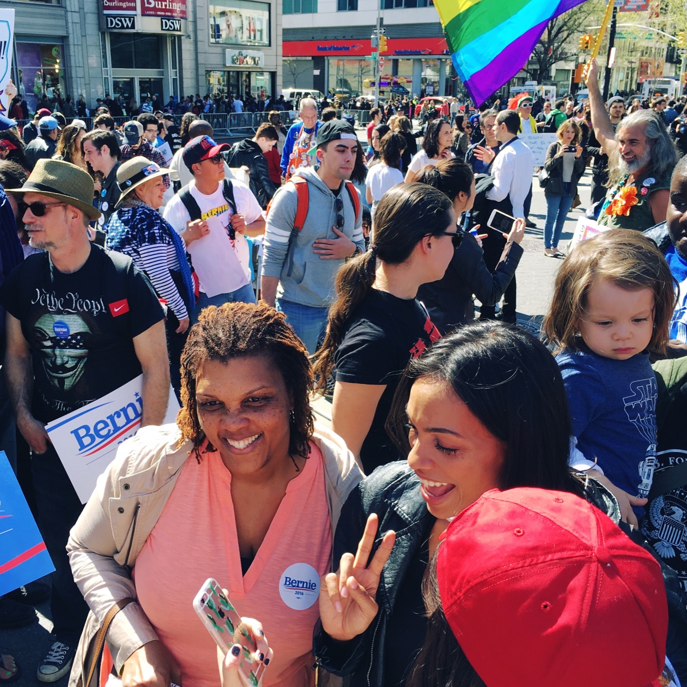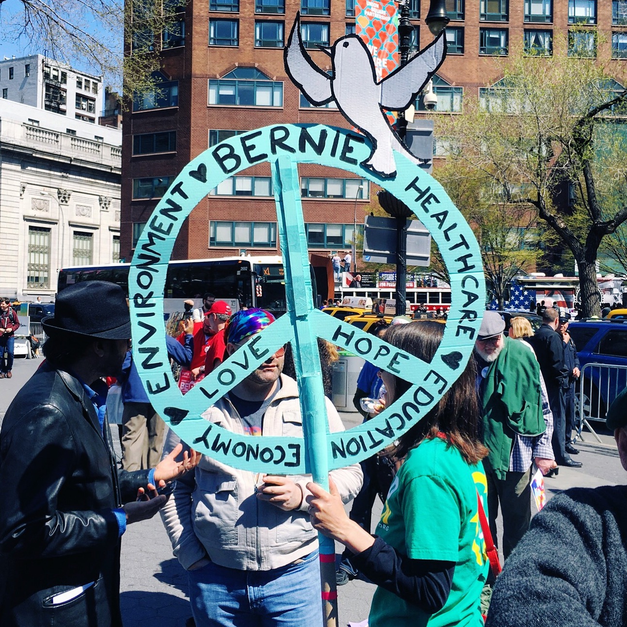 On April 16, 2016, I was pleasantly surprised, caught up, and swept along by a march and rally supporting Bernie Sanders for POTUS in New York City (Manhattan). I dropped everything, got swept along, and took lots of pictures, trying to capture the passion and excitement of his supporters.