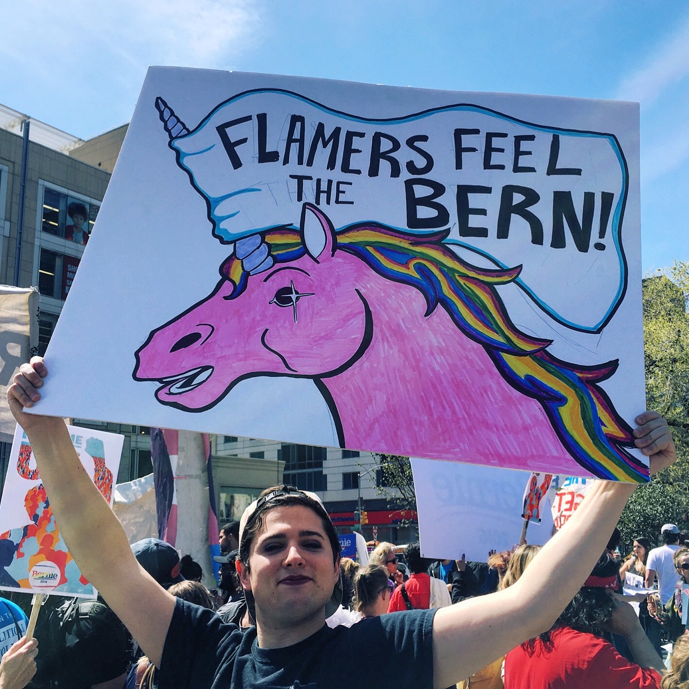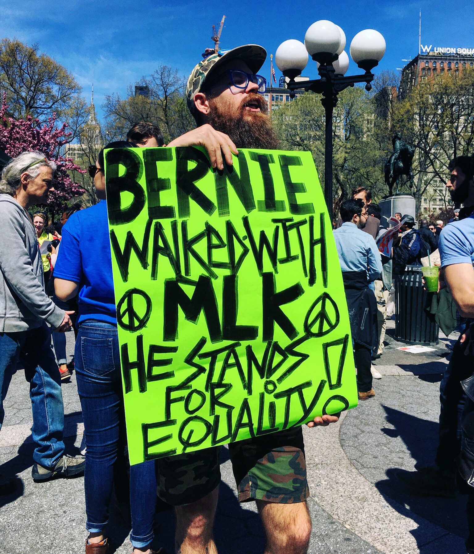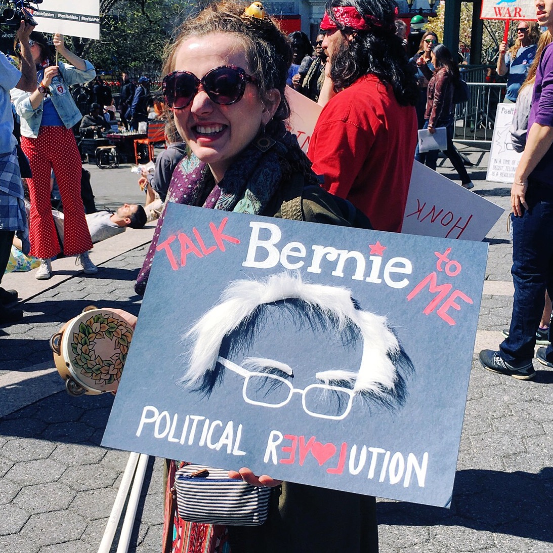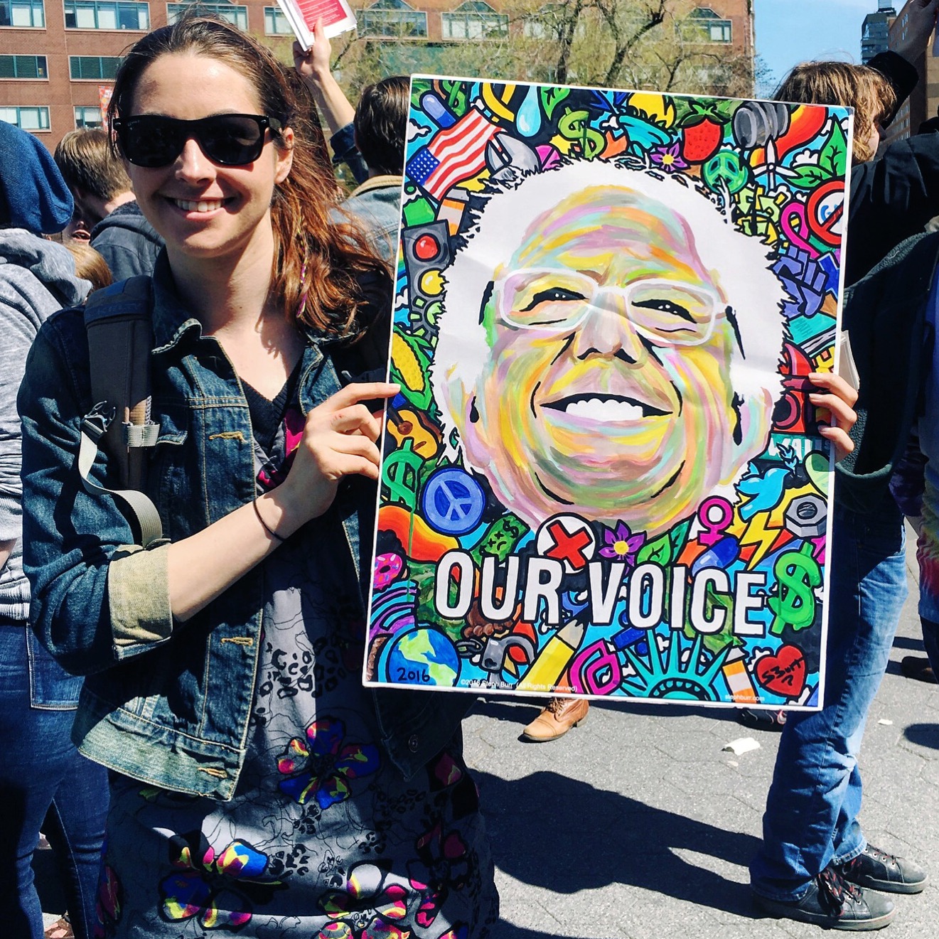 On April 16, 2016, I was pleasantly surprised, caught up, and swept along by a march and rally supporting Bernie Sanders for POTUS in New York City (Manhattan). I dropped everything, got swept along, and took lots of pictures, trying to capture the passion and excitement of his supporters.