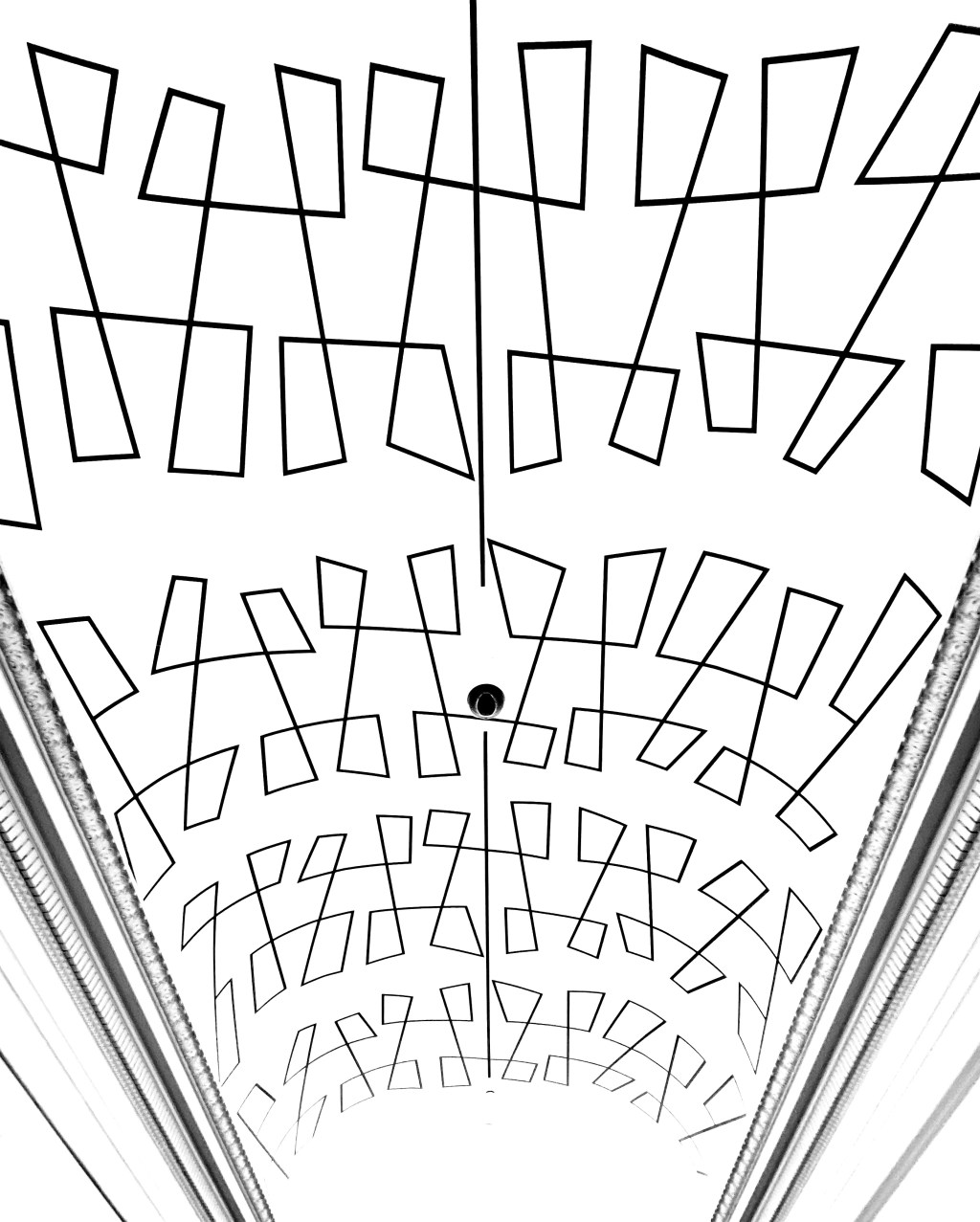 Monochromatic, Graphical Perspectives on a Ceiling at the Museum.