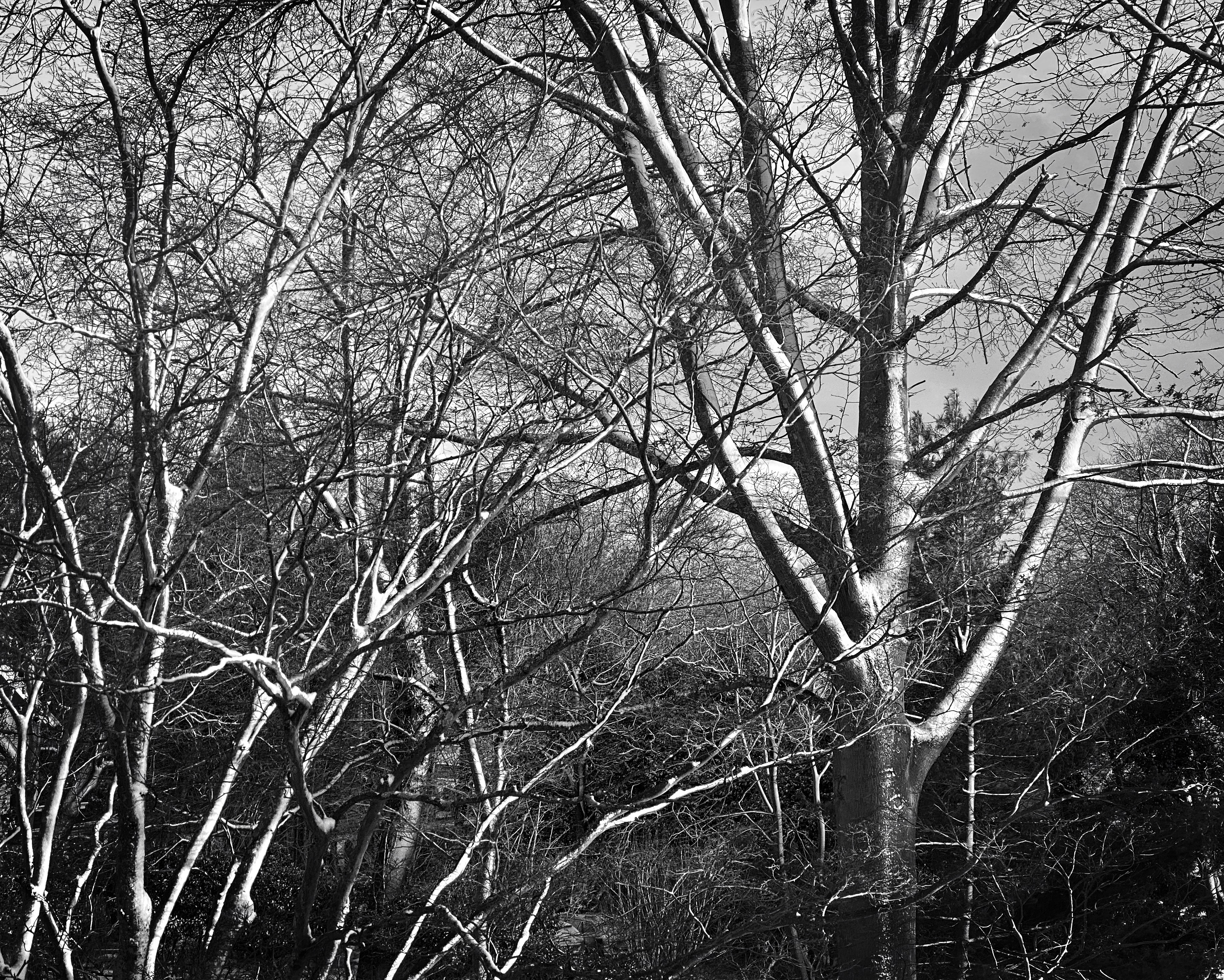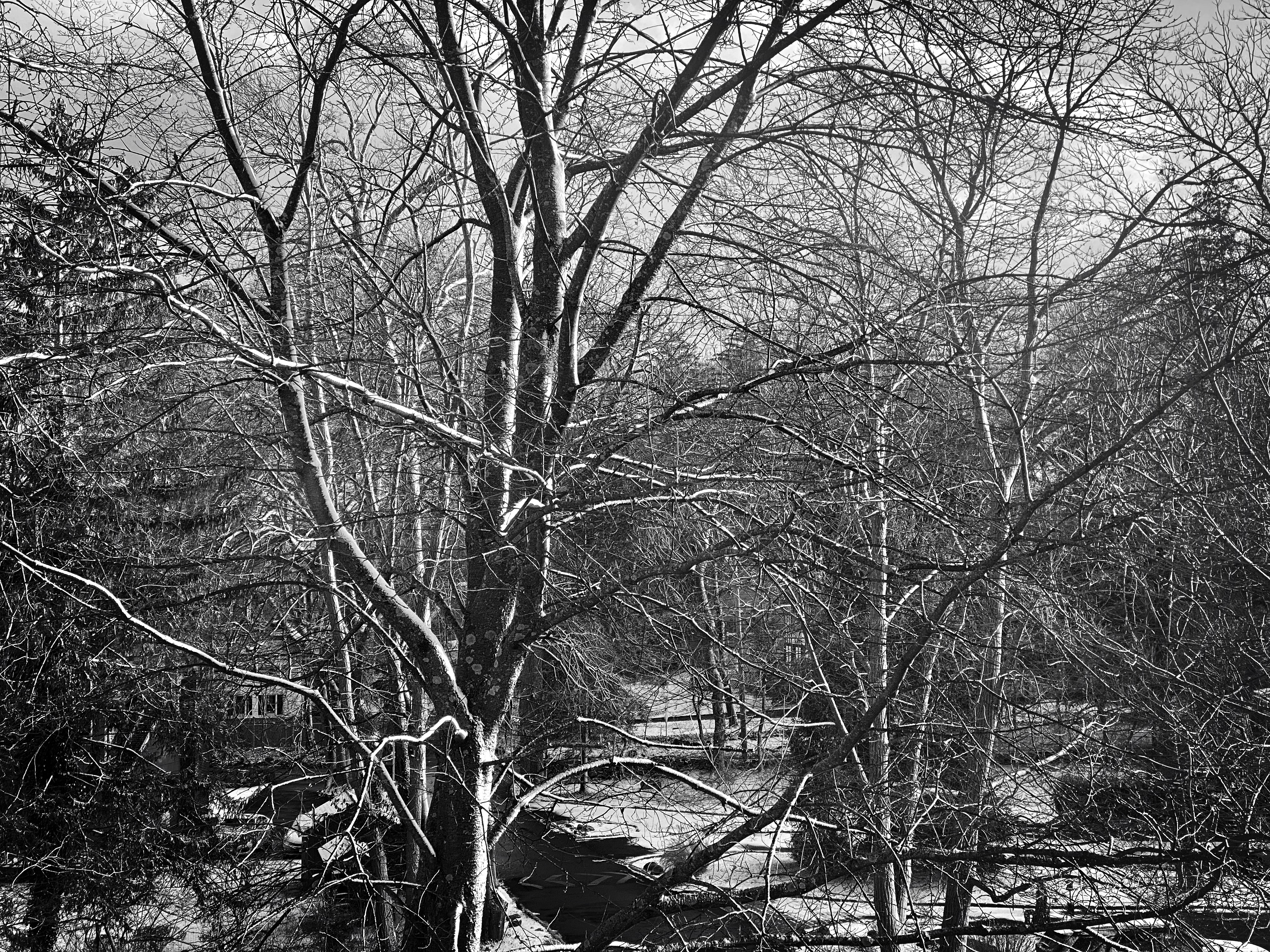 After the blinding, blustering wind and snow blew through, late afternoon sun pierced the storm clouds, making the west side of all the trees glow and glisten.