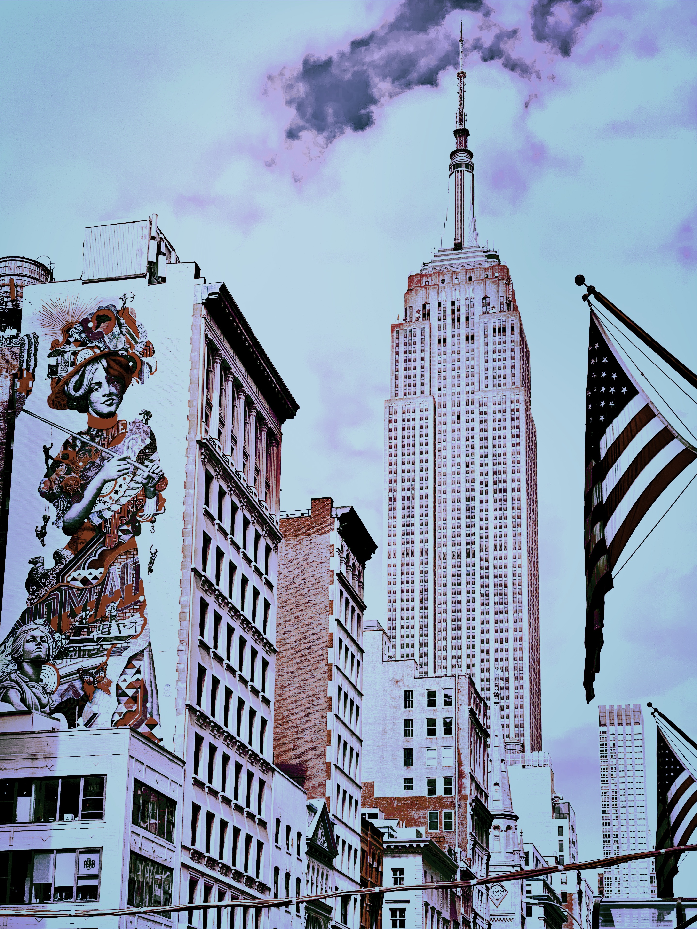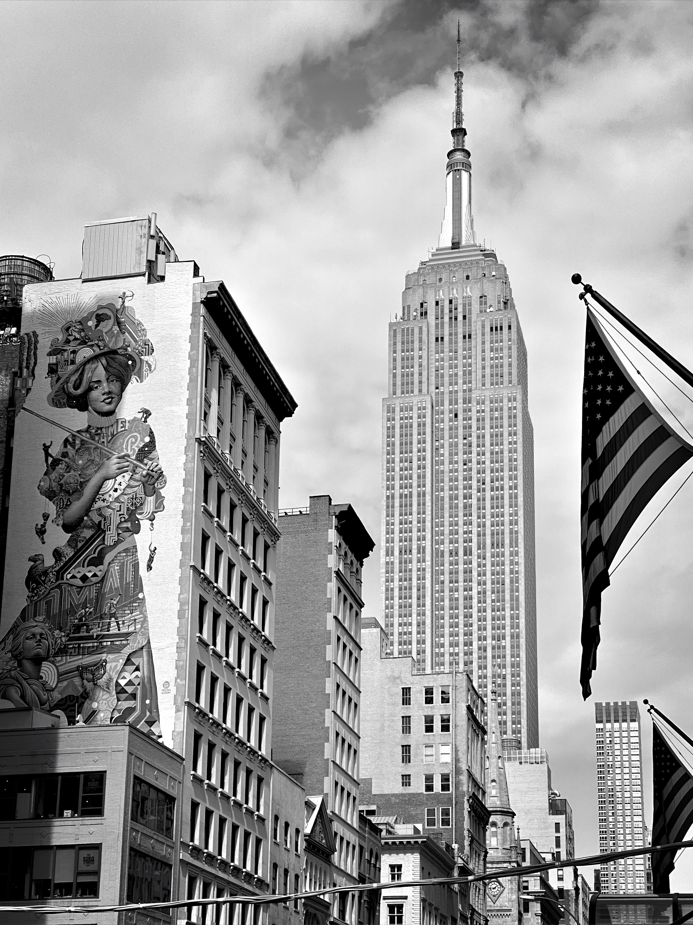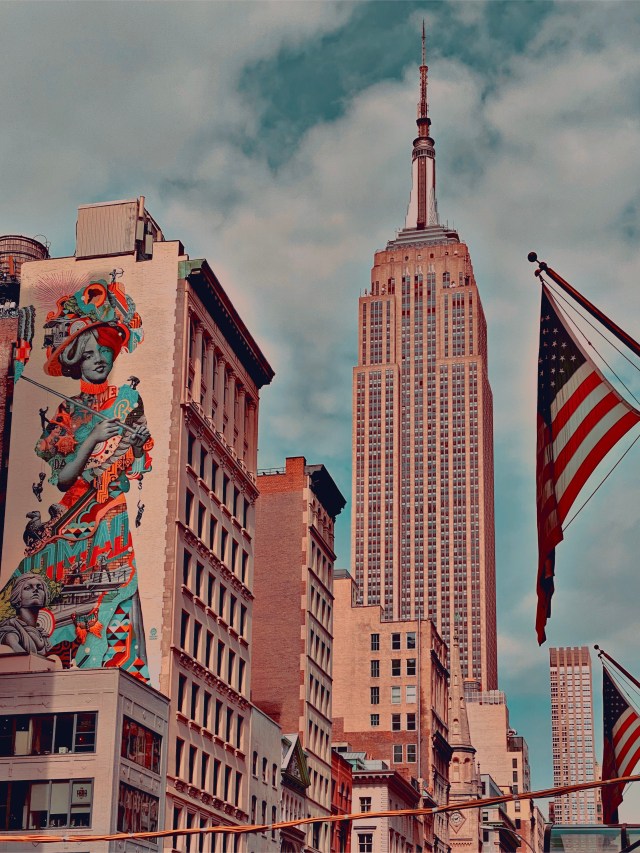 This post is another photograph I took in New York City this week — the Empire State Building, street art, and flags over Fifth Avenue.