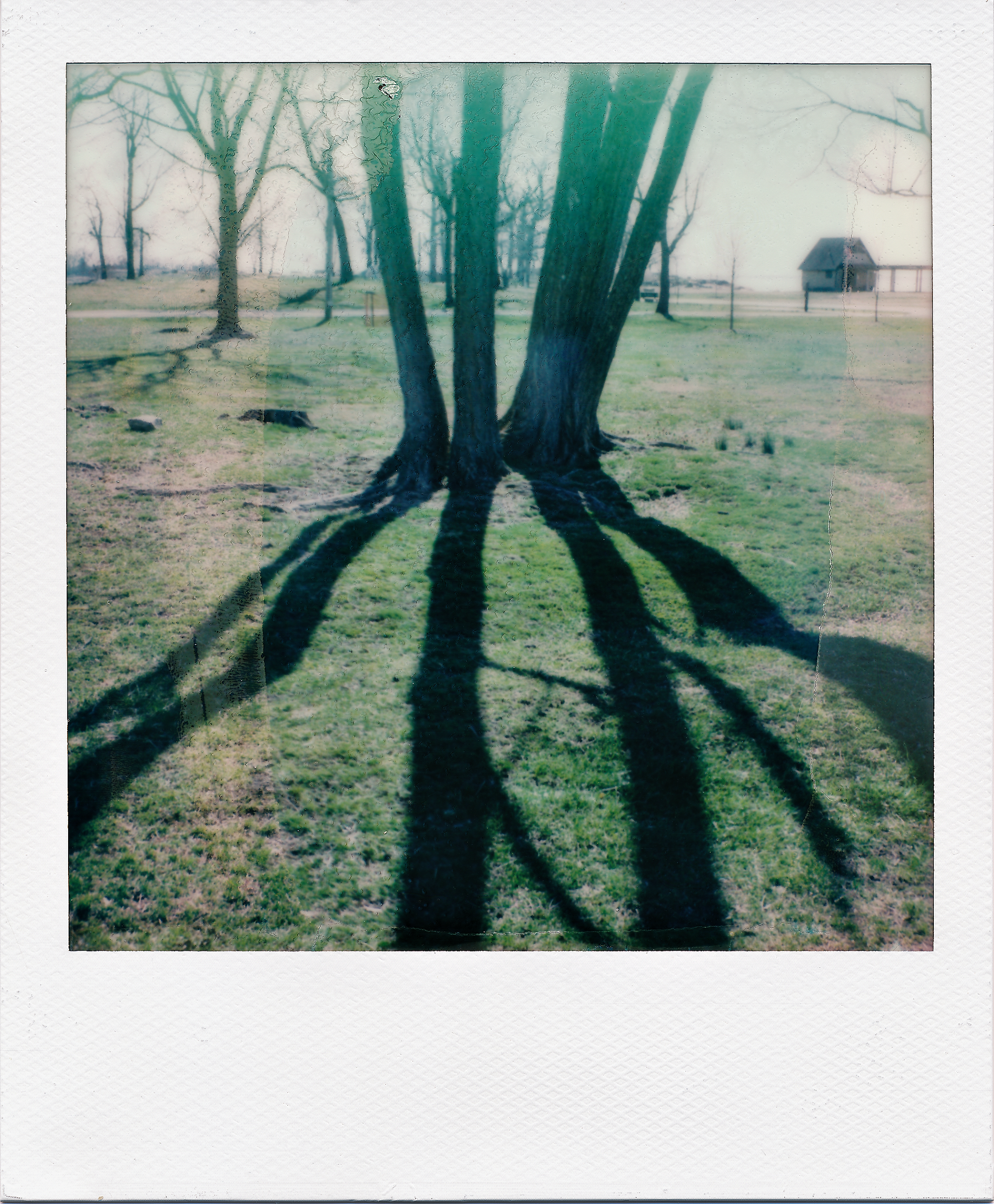 Then again, when the Polaroid film’s not fresh, the fun begins — but only if you like surprises and unexpected results! This could include slight or extreme color-shifts from aging chemistry, bubbles and streaks, uneven developer spread that makes squinch-marks throughout the image area, or a beautiful “epic fail” when the film has one or more lumps of dried developer that catch on the rollers and crinkle the image with wild effects. If the film’s old, you have no idea how things might develop, and that can be a good thing…