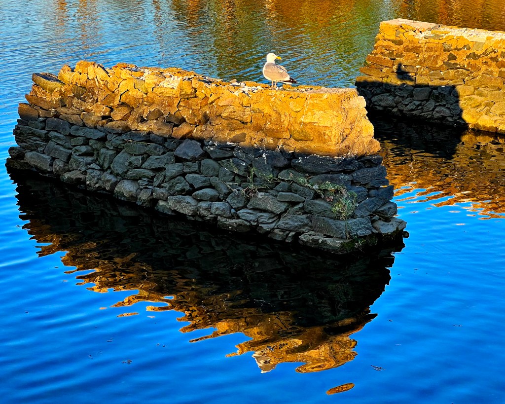 An evening walk at Cove Beach, where I saw this gull sitting on an old bridge pylon in the estuary. Low, golden-hour sunlight cast the gull’s shadow on the pylon next door, which seemed to catch its attention as it swiveled its head in search of food, as usual.