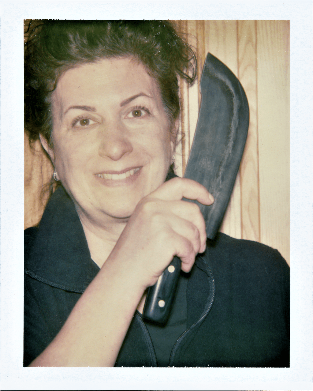 Of course, the Chef ended up with a set of knives at the end of the project, as part of her compensation and support of her client. So, when I showed up in her kitchen with a vintage Polaroid BIG SHOT portrait camera, it seemed apropos to take a BIG portrait of the Chef wielding a BIG knife, using my BIG SHOT instant camera and (FP-100c) film. She tried to look scary — like Jason in the Friday the 13th movies — but only ended up looking slightly demented… LOL