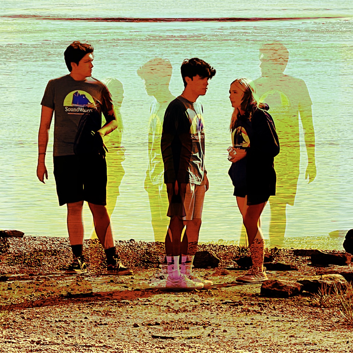 To enhance and emphasize this third-person triptych-triality of human interaction — listening, speaking, observing — I made a dimensional edit of an otherwise bland, blasé photograph of the three camp counselors. I hope you enjoy and find something interesting in the words of this poem, or any of my late father’s work, as I do…