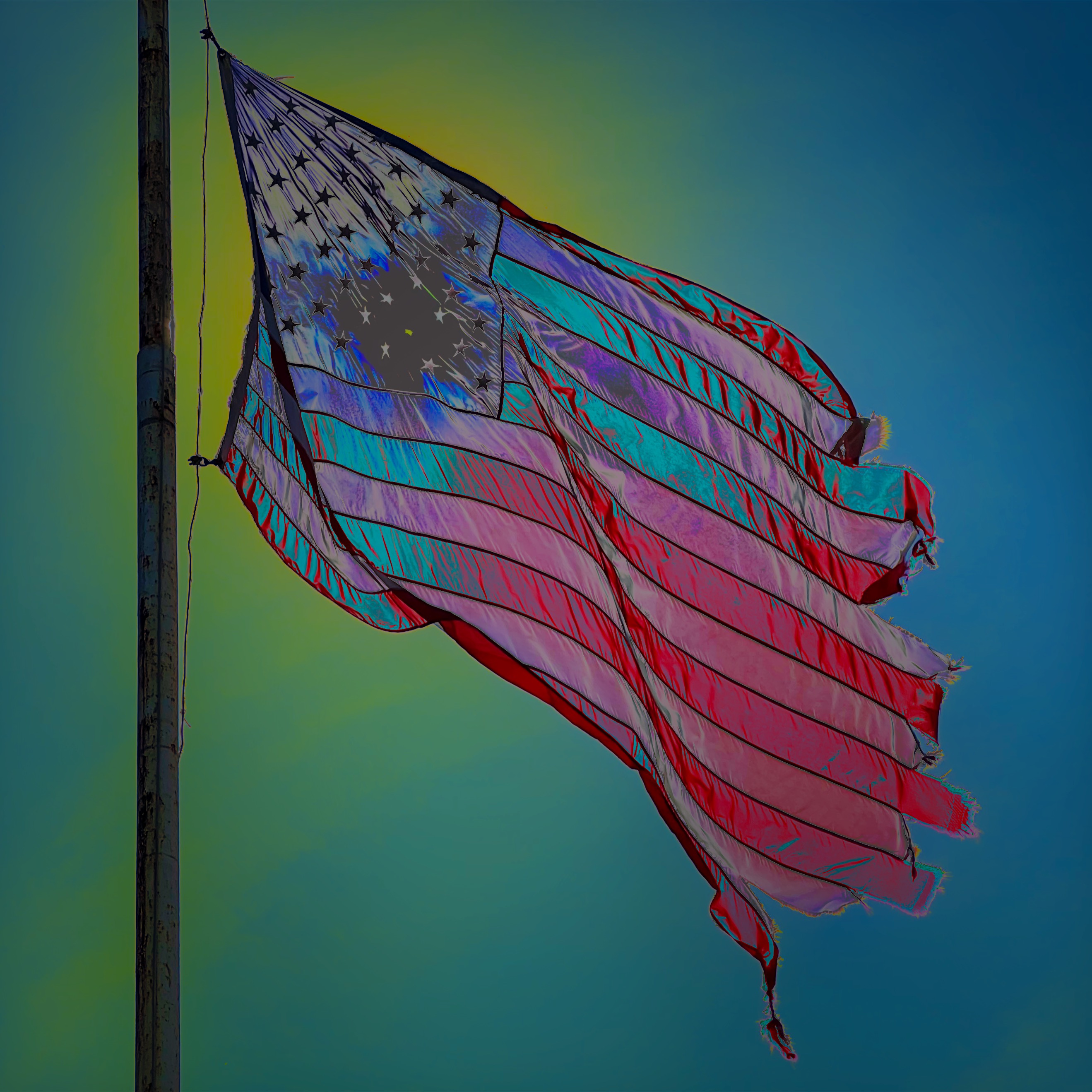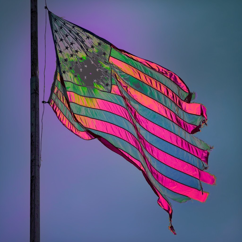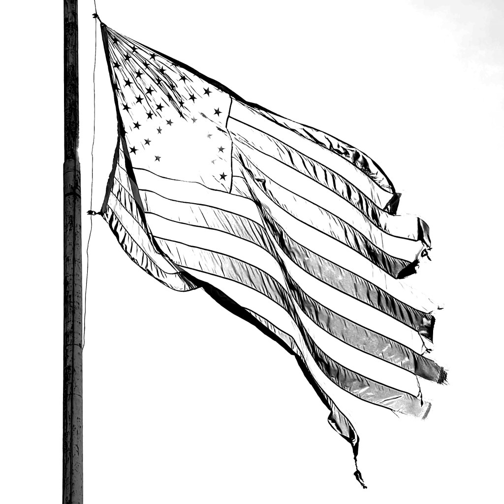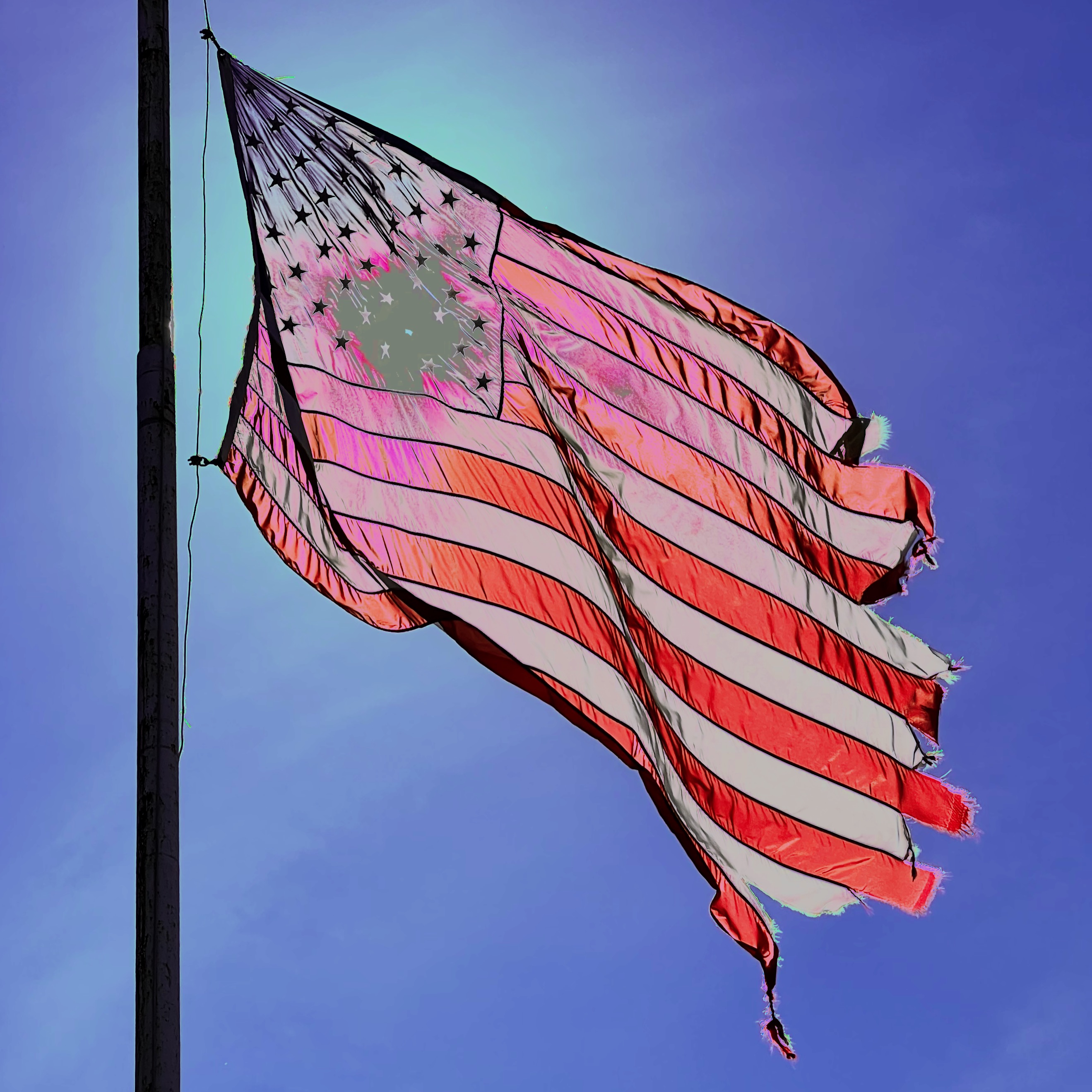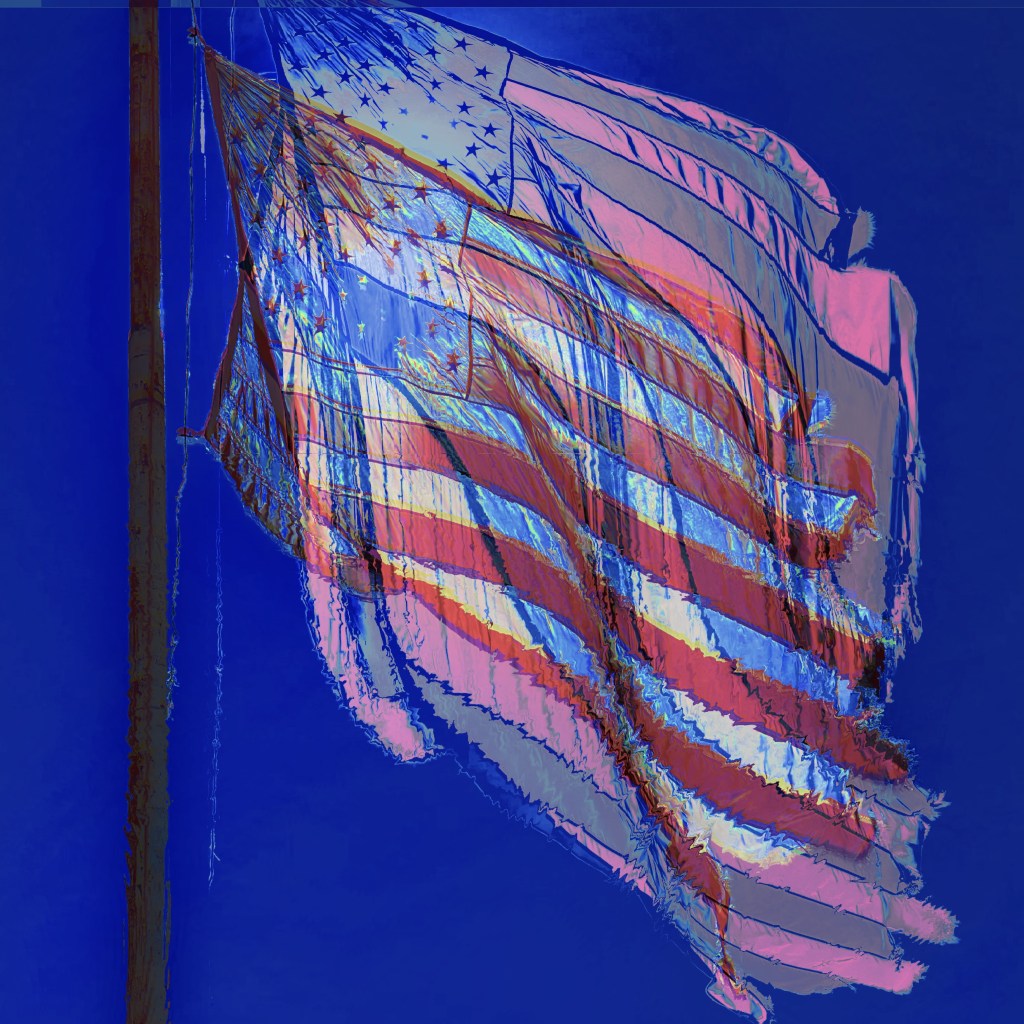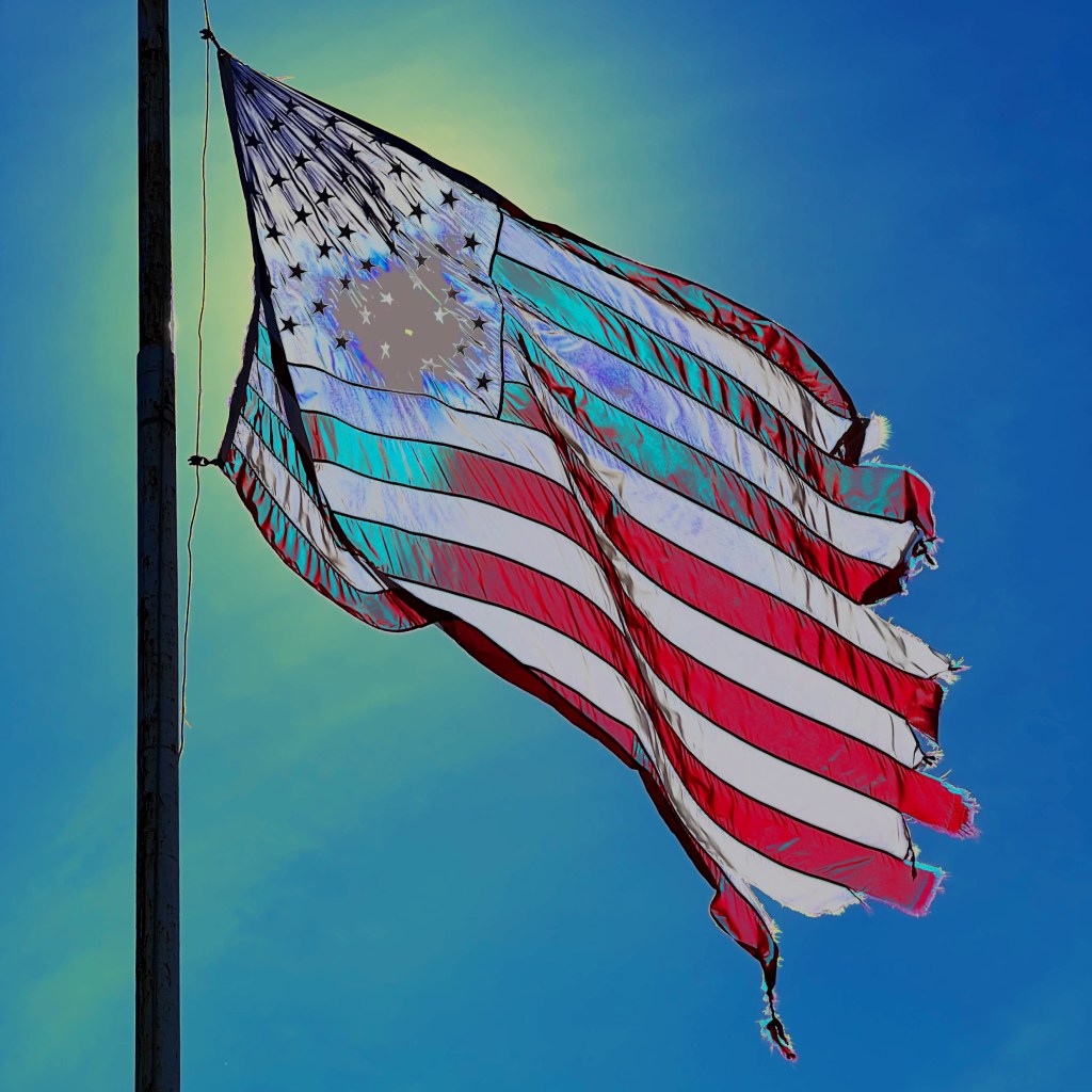 Today’s photos are a series of edits, riffing on that ripped and tattered American flag flying at half-mast (for reasons unknown, or just forgotten) with the morning sun shining through it. I wanted to visually communicate separateness and sameness, splitting and symbiosis, tearing apart and joining together at the same time.