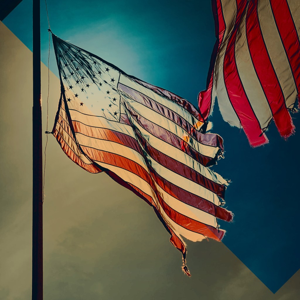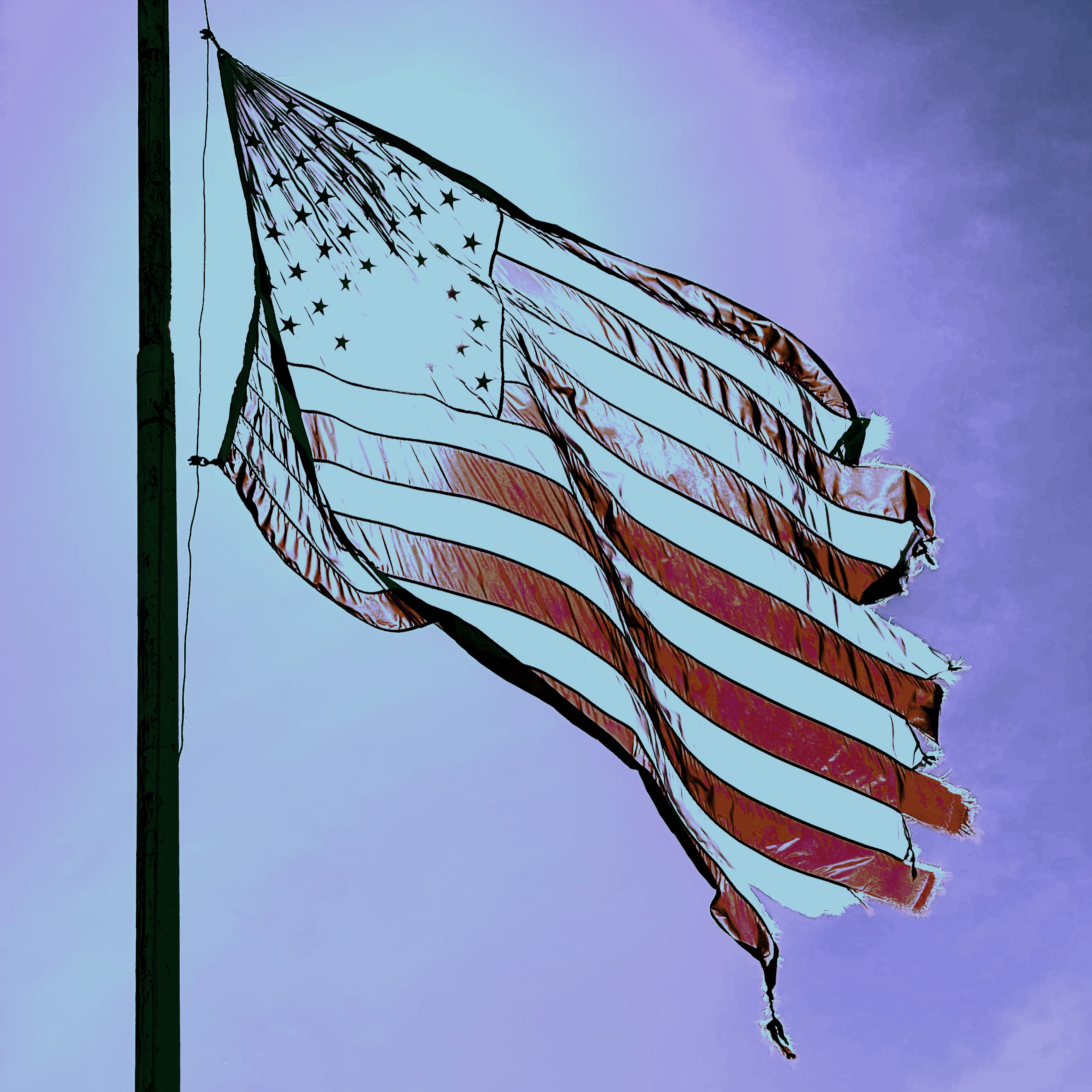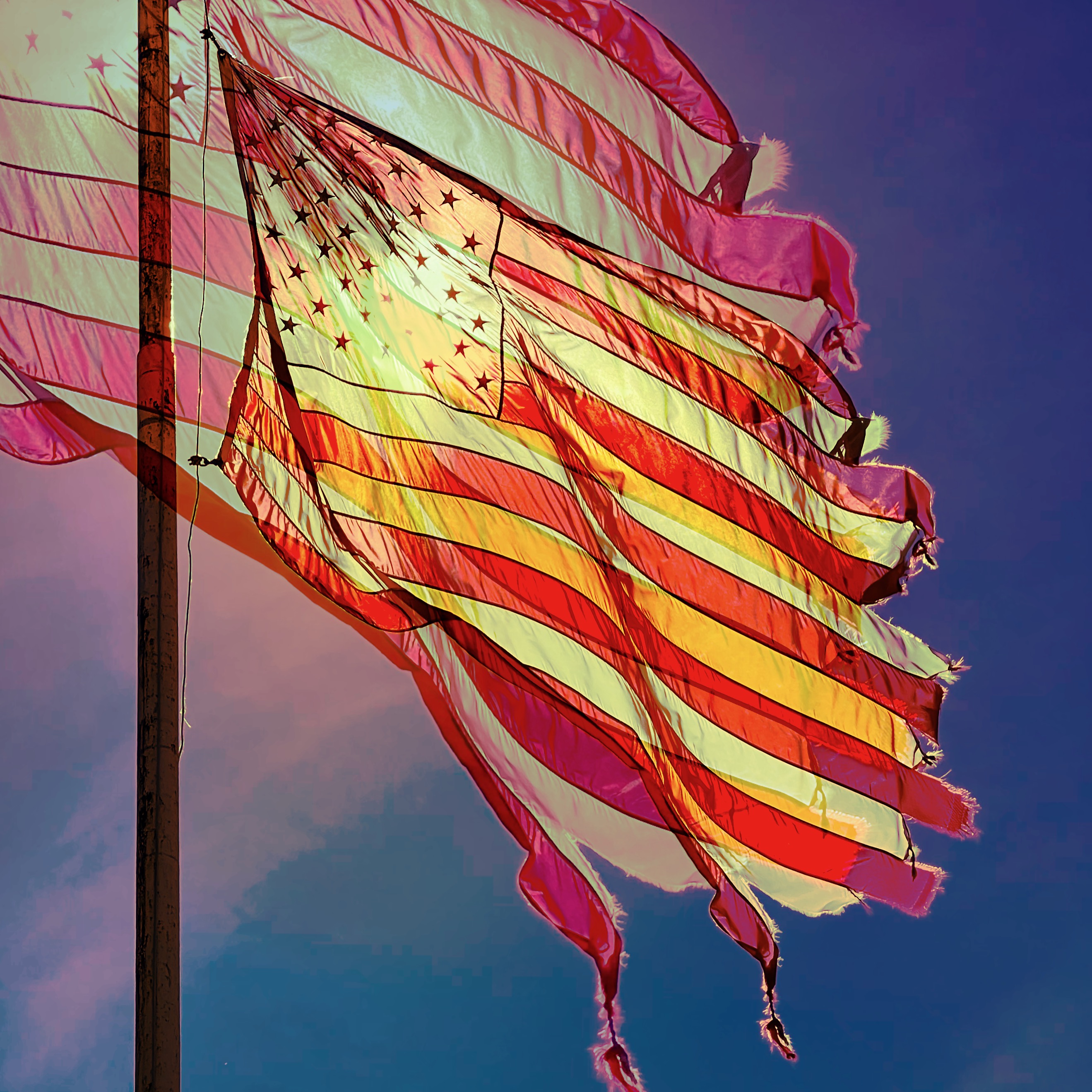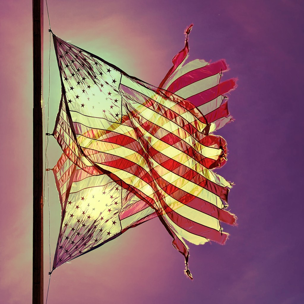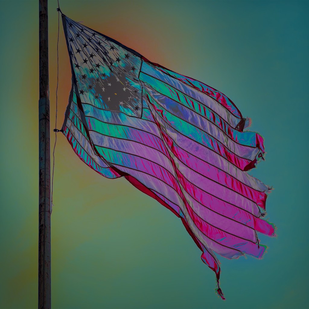 Today’s photos are a series of edits, riffing on that ripped and tattered American flag flying at half-mast (for reasons unknown, or just forgotten) with the morning sun shining through it. I wanted to visually communicate separateness and sameness, splitting and symbiosis, tearing apart and joining together at the same time.