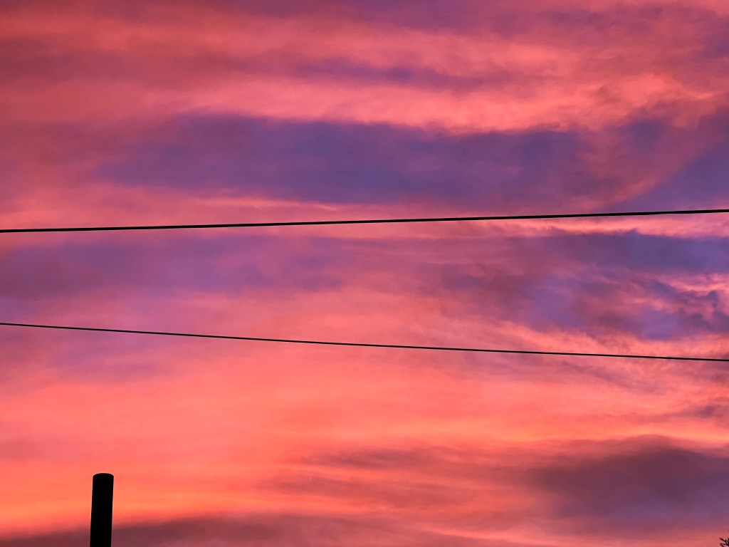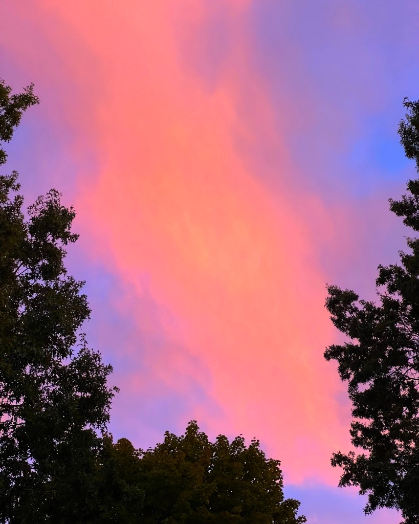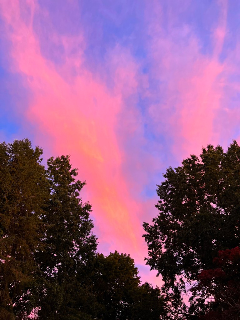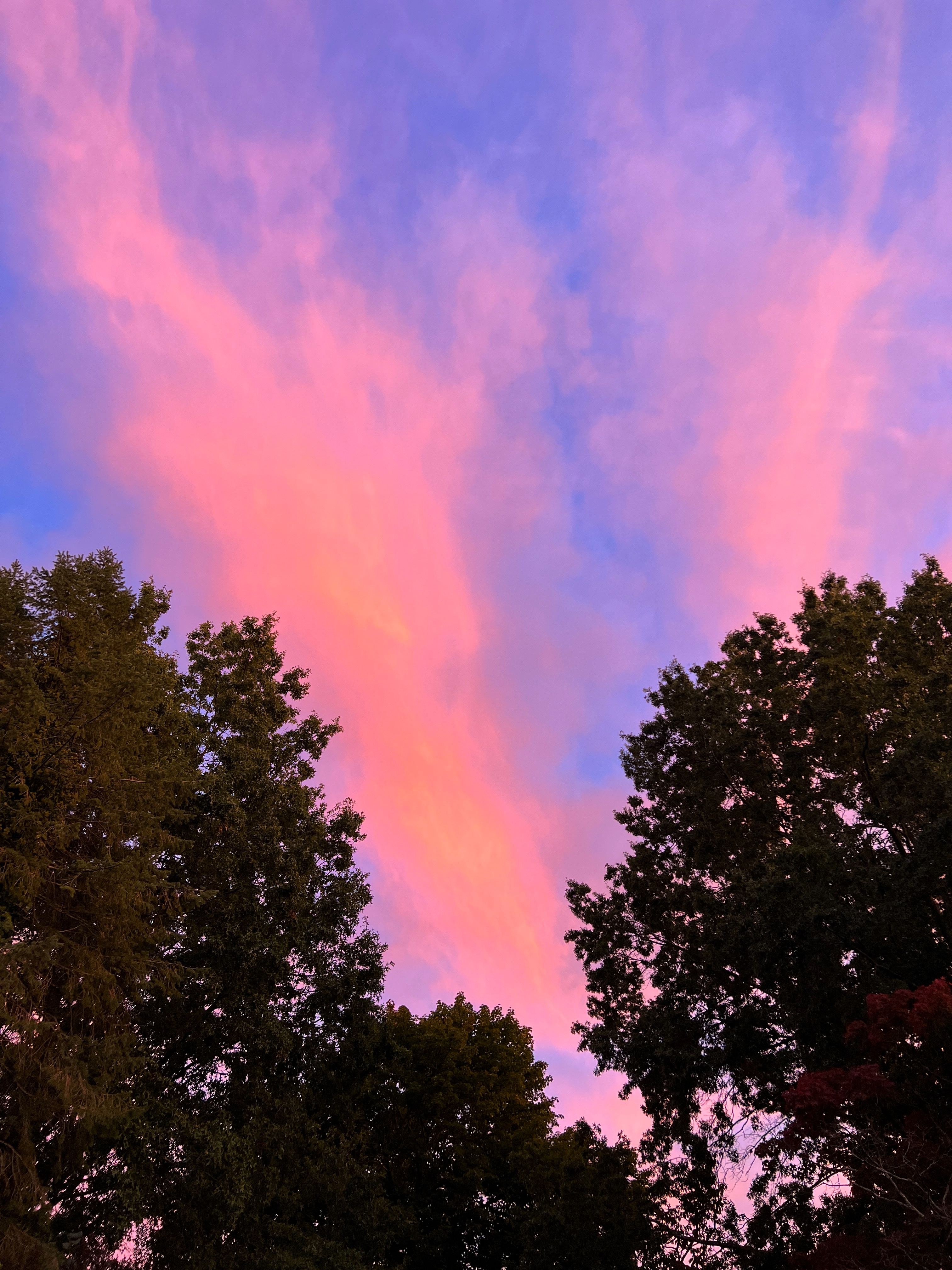 For the second time in a week, I walked outside and noticed the dusk sky lit by lovely, warm, peach-pink tones — a sudden onset of sunset.