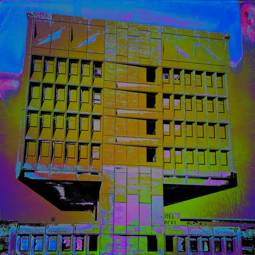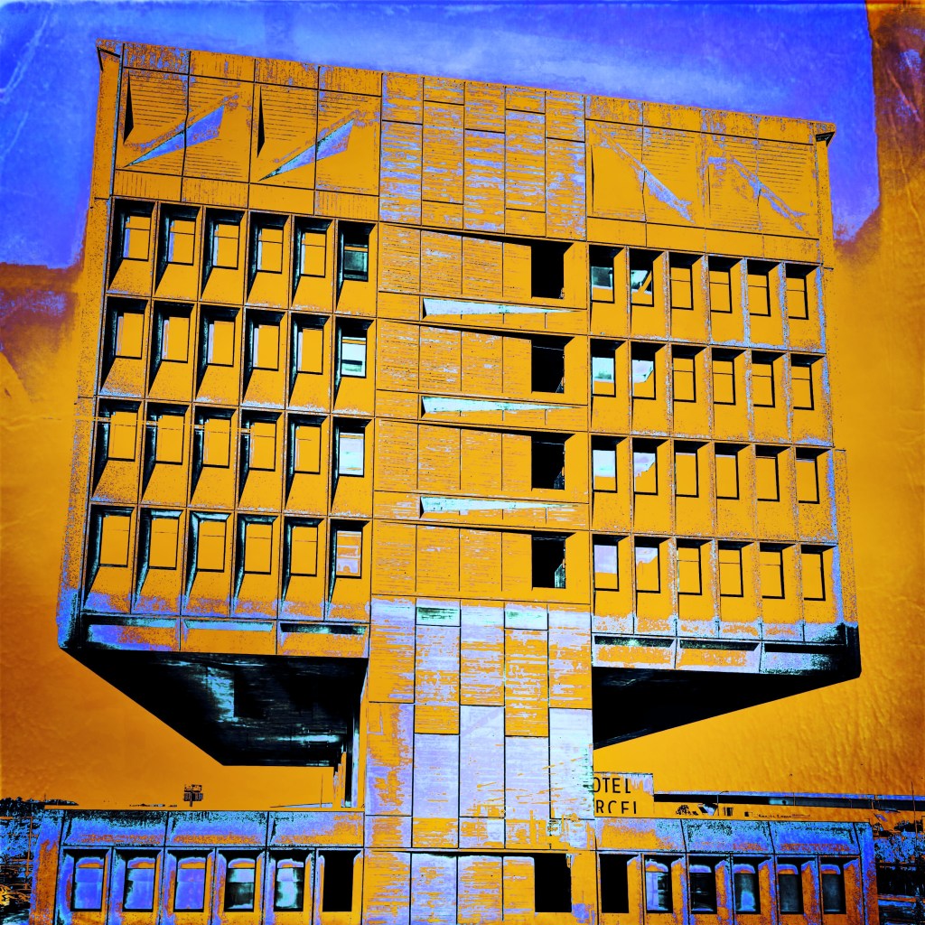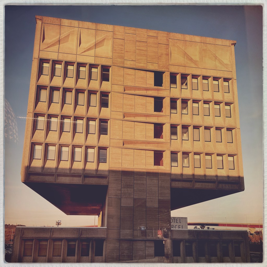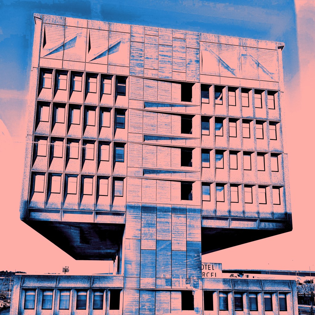 The brutalist building has been recently renovated and repurposed as a “green” hotel and conference center, named Hotel Marcel, part of the Hilton family of properties…