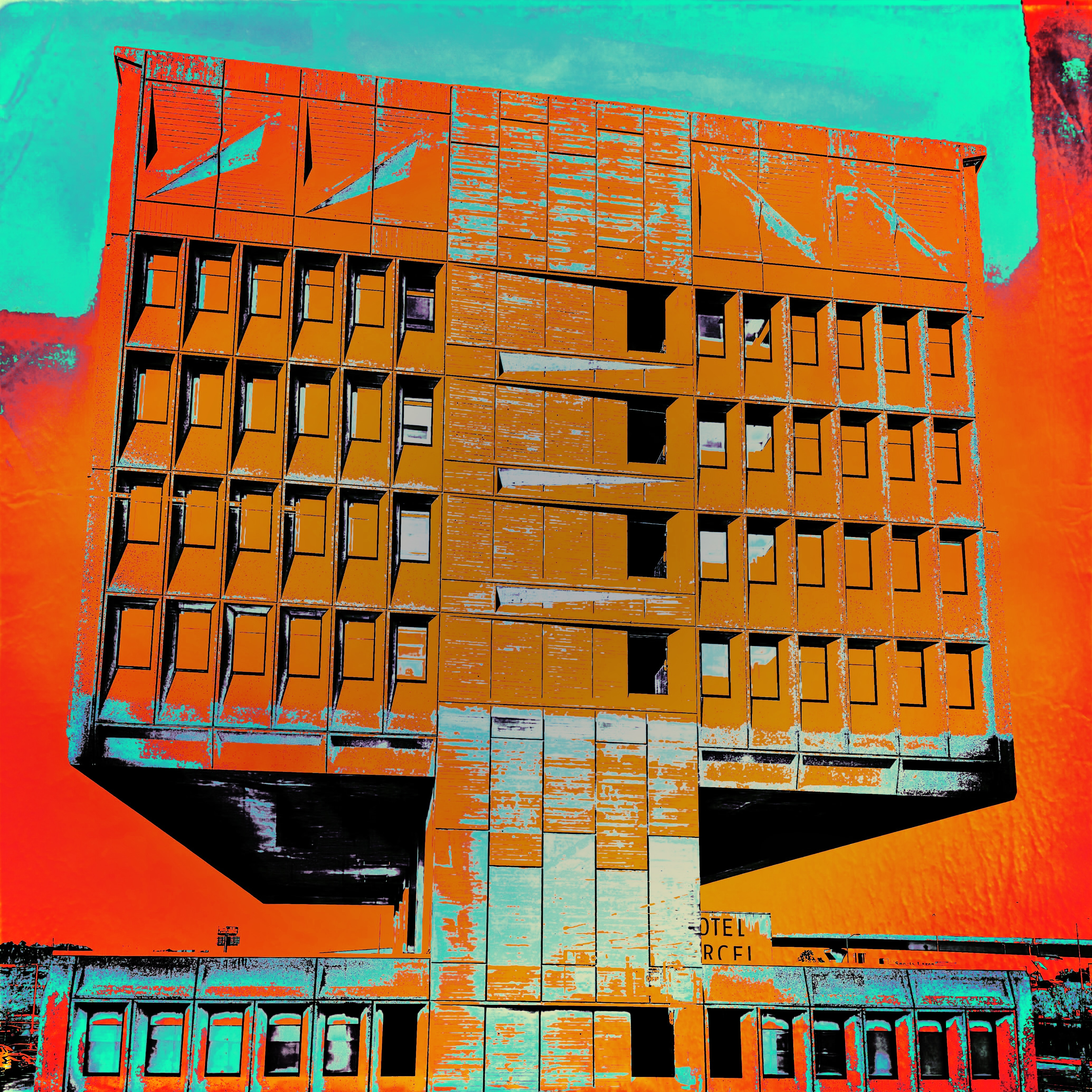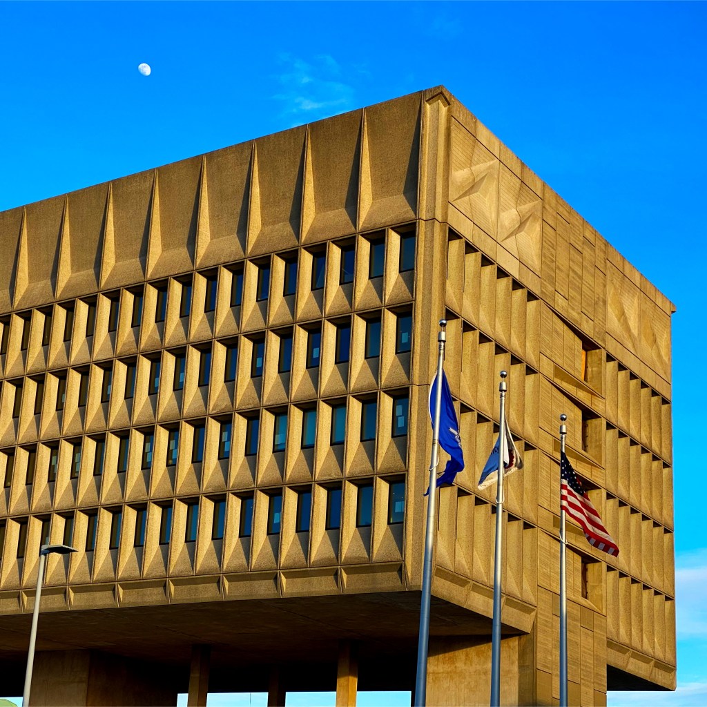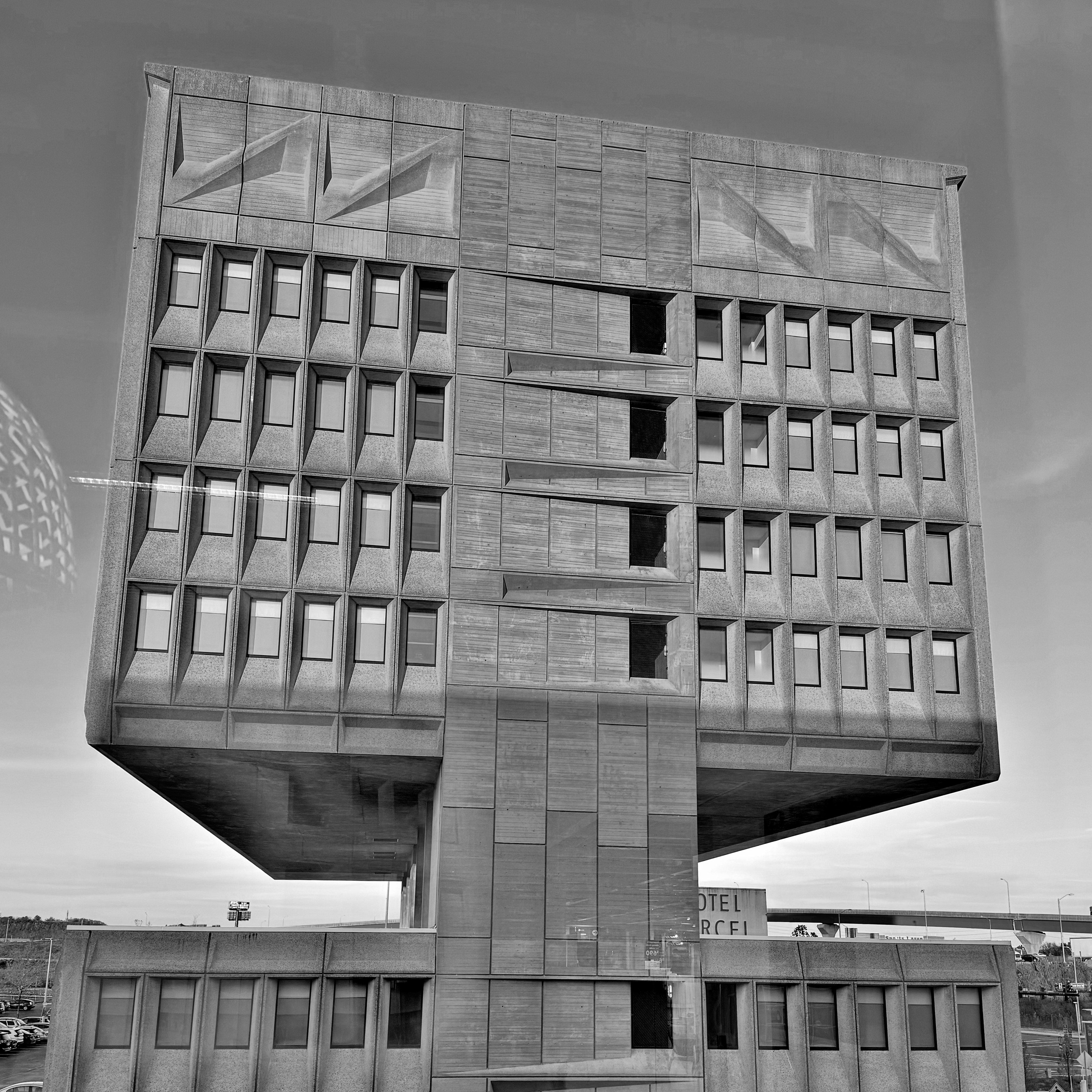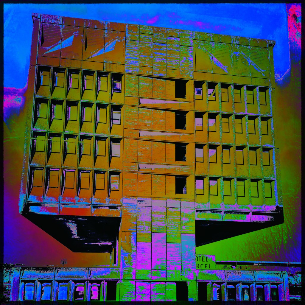 The brutalist building has been recently renovated and repurposed as a “green” hotel and conference center, named Hotel Marcel, part of the Hilton family of properties…