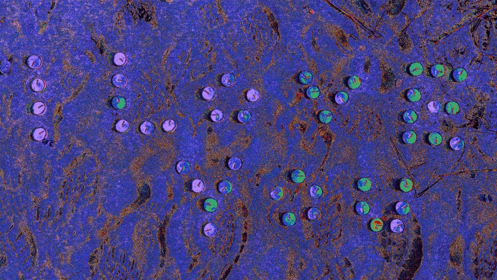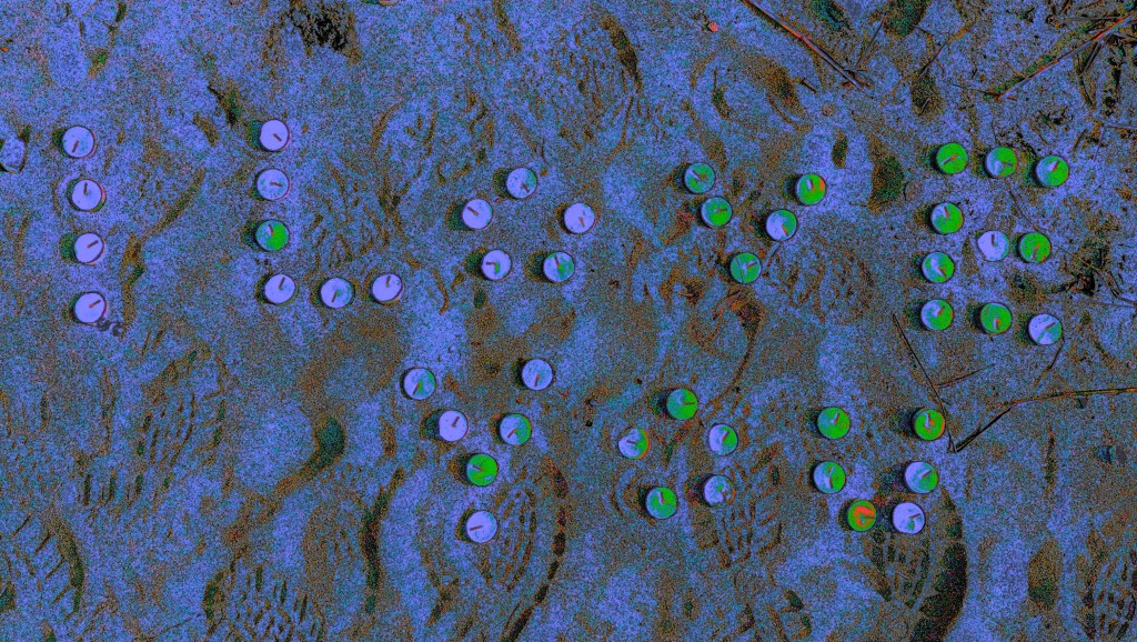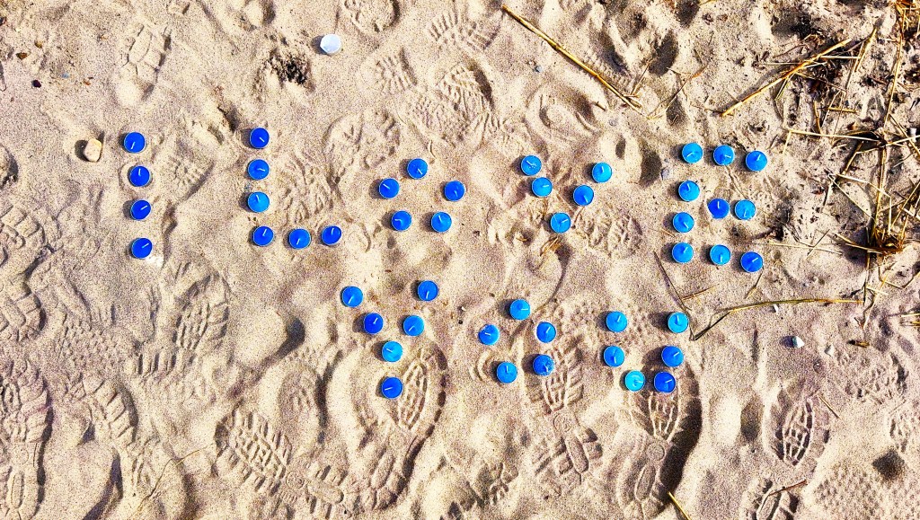 Walking to the water’s edge at high tide on a cold, bright, winter morning, I was delighted to find someone had arranged blue votive candles in the sand, forming the words, “I LOVE YOU”…