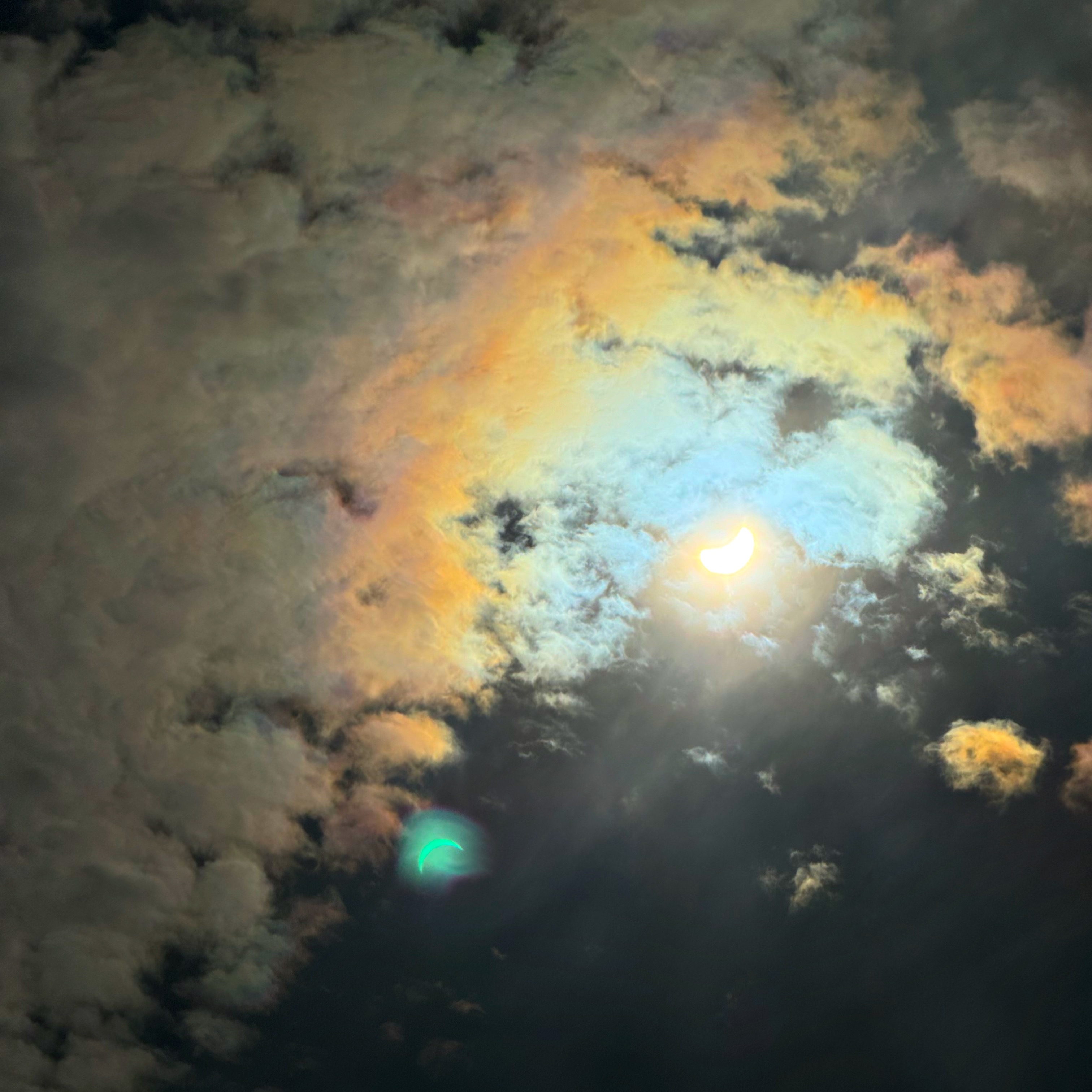 Even though I wasn’t in the “path of totality” it was fascinating to watch today’s solar eclipse reach 92% where I live. Starting around 2:11pm, the moon’s curve gradually encroached on the sun’s circle, eerily dimming the strong mid-afternoon light as it advanced.