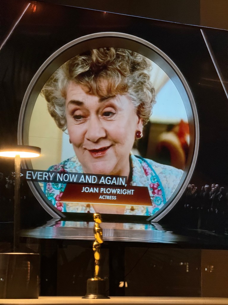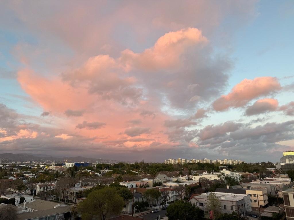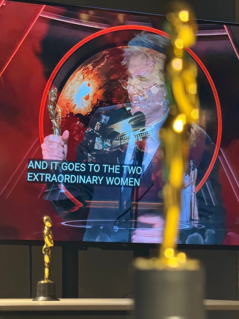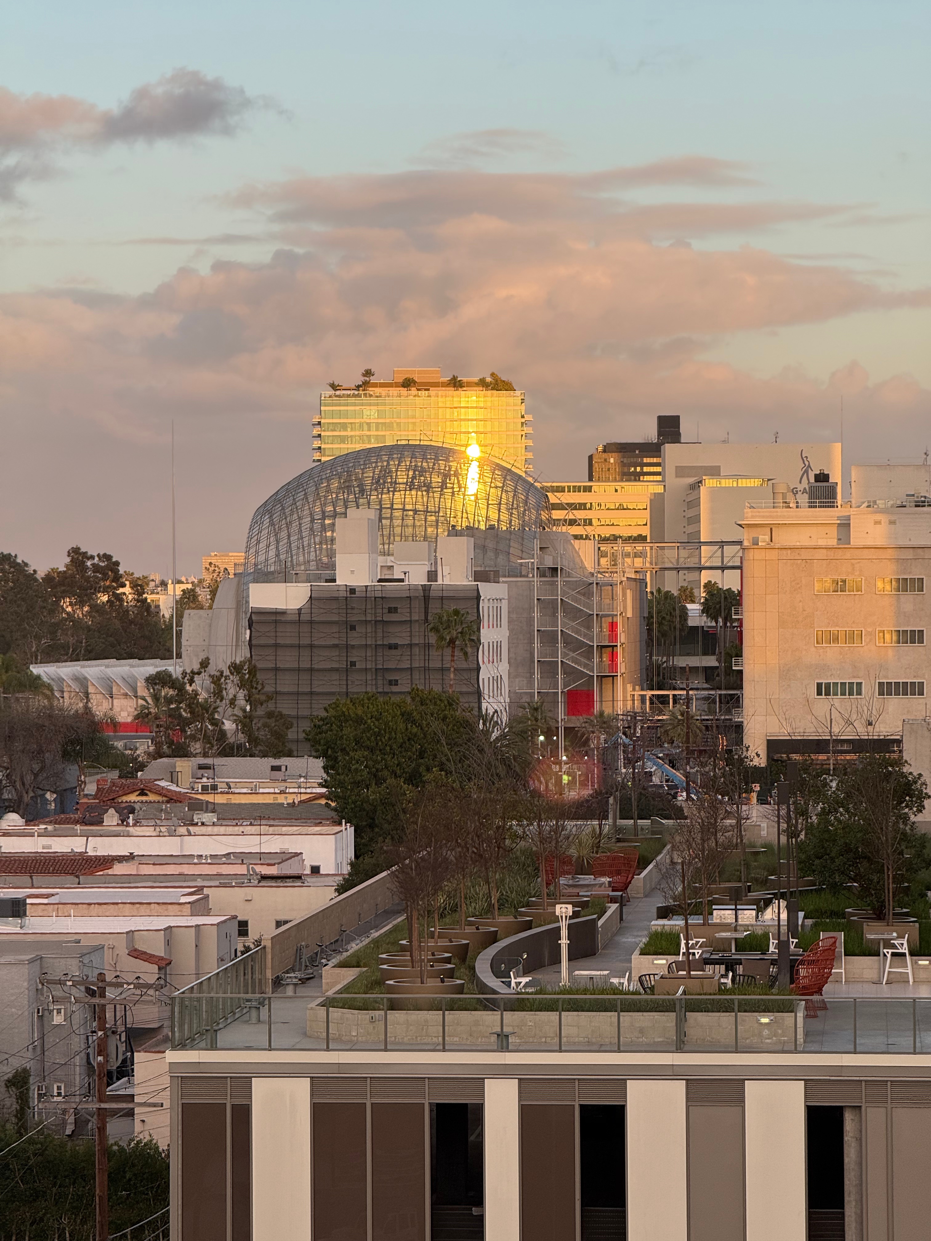 That’s when I noticed a TV screen inside the glass fishbowl blaring LOUDLY with some big, epic, Hollywood event — OMG, it was the OSCARS!!! Looking around amused, I noticed the plastic, miniature Oscar statues on each table, the Hollywood sign in the distance, the Academy Museum of Motion Pictures brightly lit up to the east, and realized I might run over the allotted 1.5 hours…