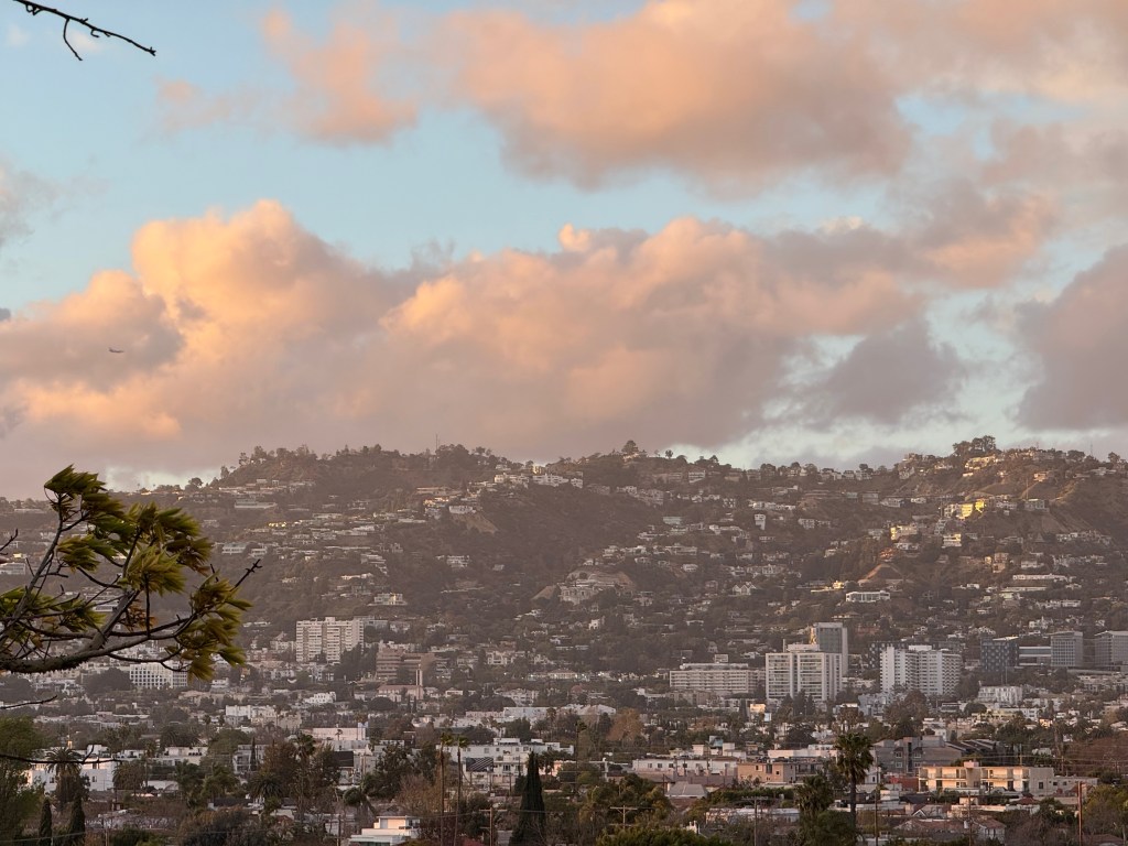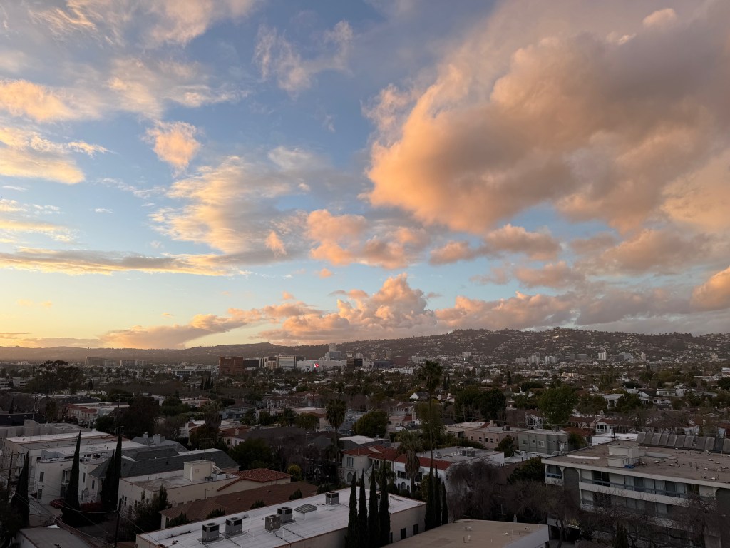 As luck would have it, I was in Los Angeles for work and a visit with my son, when I discovered it was Oscars night! After my son flew back to El Salvador from LAX, I was alone in my hotel, so I went up to the rooftop restaurant for dinner to console myself. It was bright, cold and windy, not the warm California sunshine kind of evening you imagine. But, it was also an opportunity to watch the sunset over Beverly Hills and Hollywood Hills from a rooftop and eat a delicious dinner at one of my favorite hotels in the city of Angels.