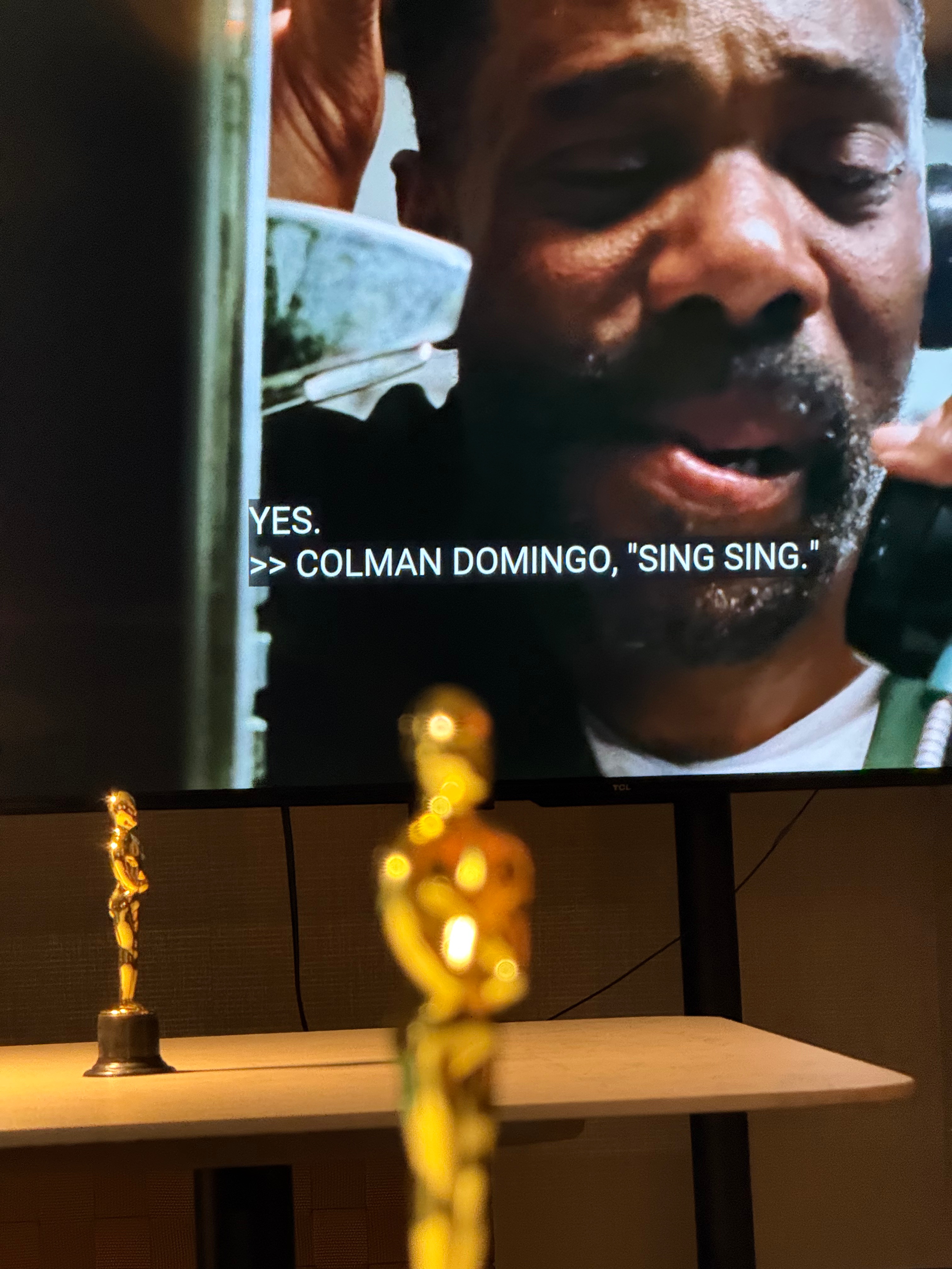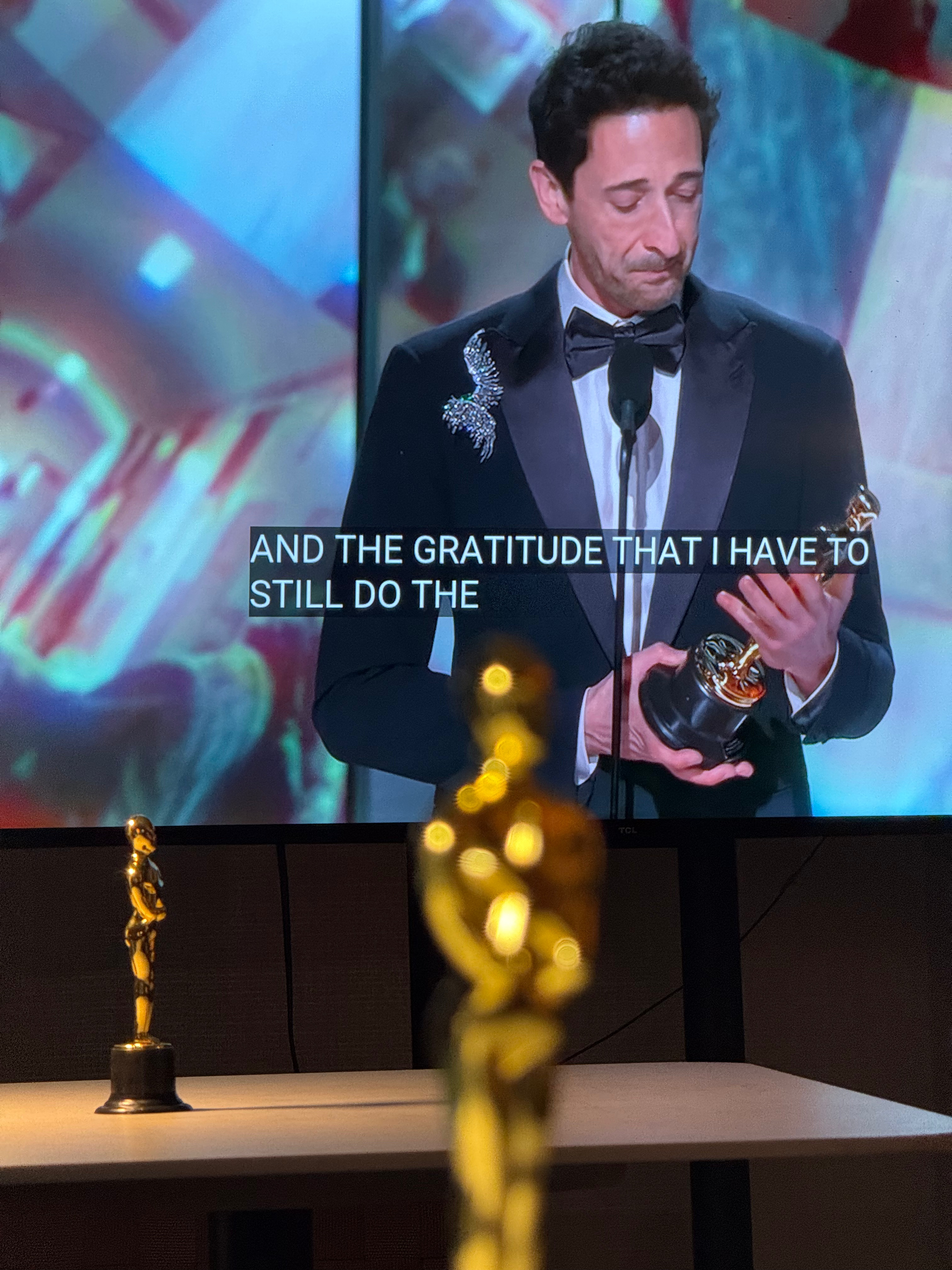 Watching the Oscars inside the fishbowl from outside under the heaters, I noticed an interesting person watching in parallel. They were dressed in a faux fur coat and reacted with great passion and interest to each update on the big (television) screen…