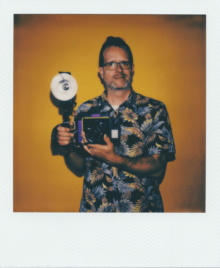 This shot of me was captured by my new friend Ben of Crown and Flint Photo, using a Mamiya Press Camera outfitted with a custom-made, 3D-printed adapter for a Graflok Instax Wide instant film back. It was quite a colorful contraption; slow to prepare for exposure, but delivered a great result!
